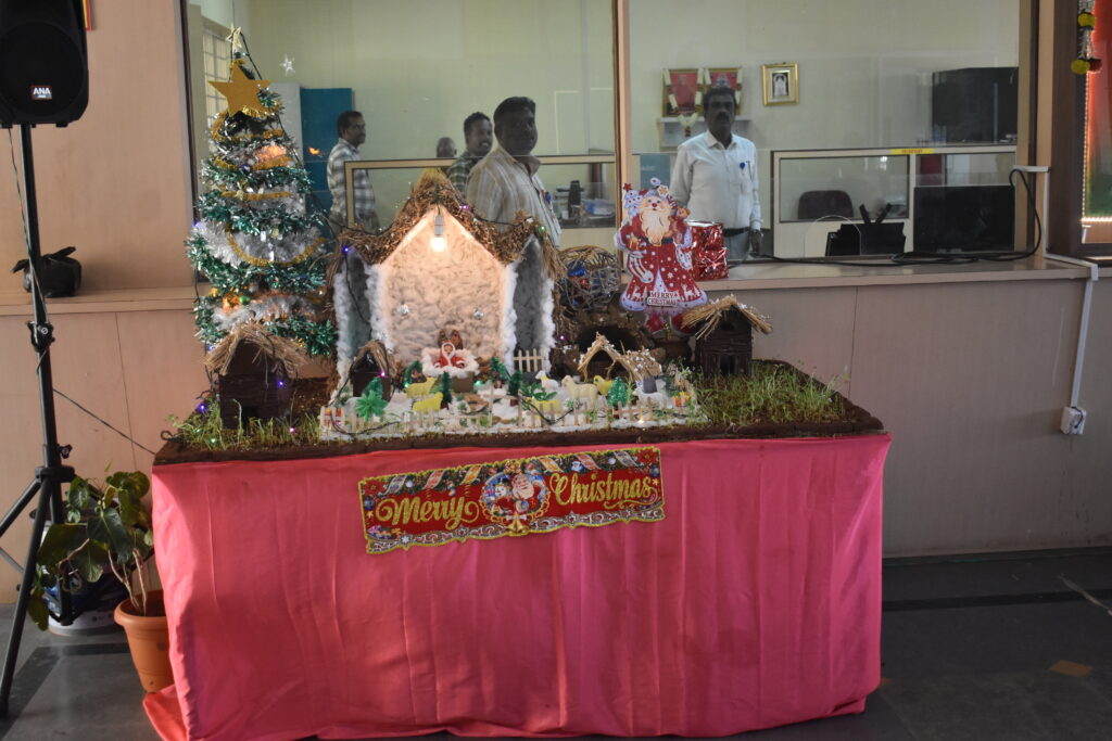 The programme also included Christmas songs presented by student houses, a performance by the Western Dance Team, and a Nativity Musical Play. Traditional plum cake was distributed to the participants during the celebration. The event also featured the arrival of Santa Claus. The programme concluded with a vote of thanks.